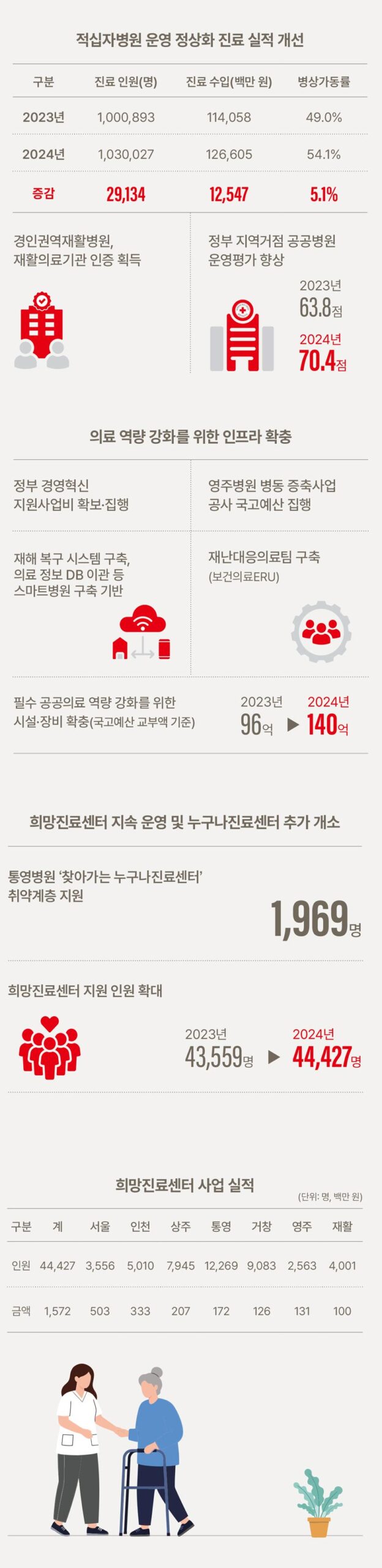 더불어 취약계층을 위한 공공의료사업을 확대해 의료 사각지대 해소에 기여하고 있습니다.